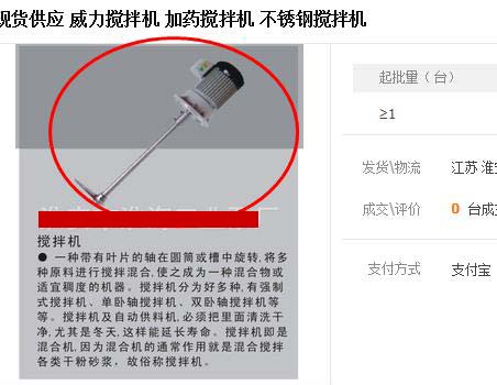 公司的攪拌機(jī)圖片又被同行盜用了,今天在阿里巴巴1688首頁隨意用了幾個關(guān)鍵詞“不銹鋼攪拌機(jī)”、“化工攪拌機(jī)”、“液體攪拌機(jī)”、“加藥攪拌機(jī)”居然搜出了不少盜用的圖片,看到這種情況不介意是假的,畢竟是自己的知識產(chǎn)權(quán),況且“瘌痢頭的兒子是自己的好”,從產(chǎn)品的研發(fā)、設(shè)計、生產(chǎn)、拍攝到PS修整,沒一項都是自己心血的結(jié)晶,就這樣不打招呼的被人“借走”怎么想也不是滋味,但遇到這種情況更多的是無奈。